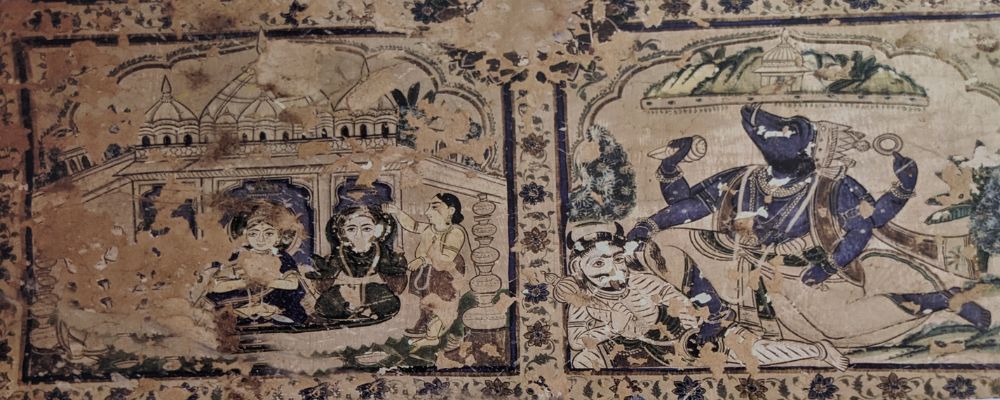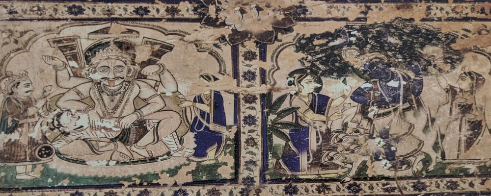 नृसिंह अवतार व कदंब के नीचे नृत्यरत कृष्ण : रामराजा मंदिर : ओरछा : सोलहवीं सदी
