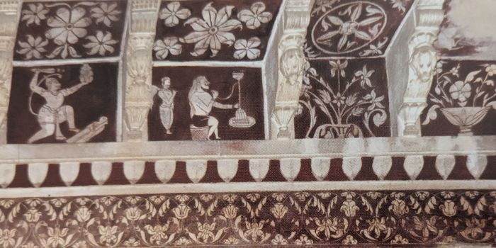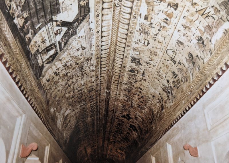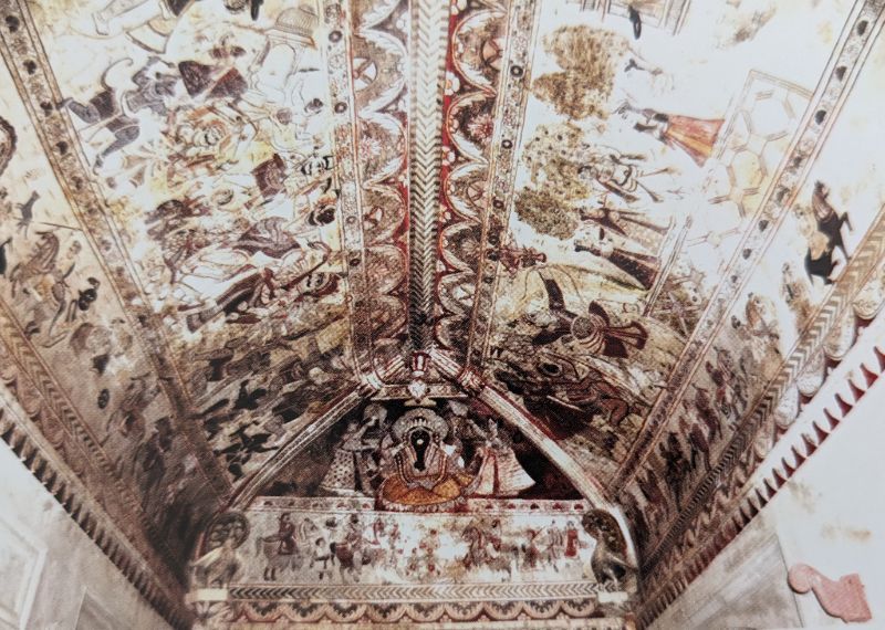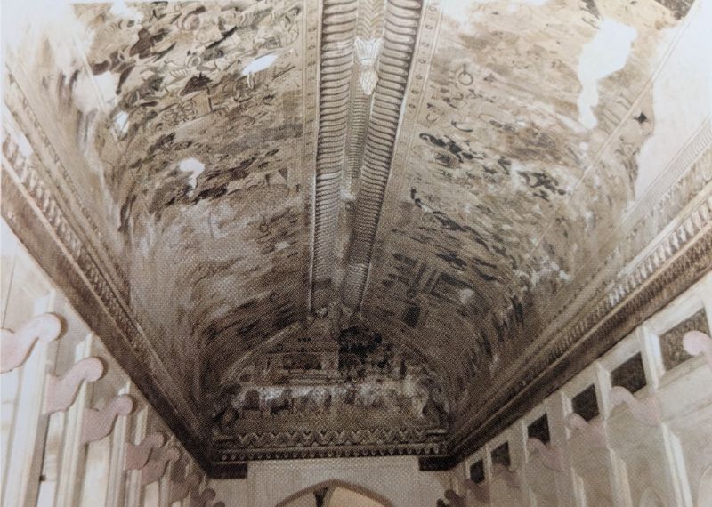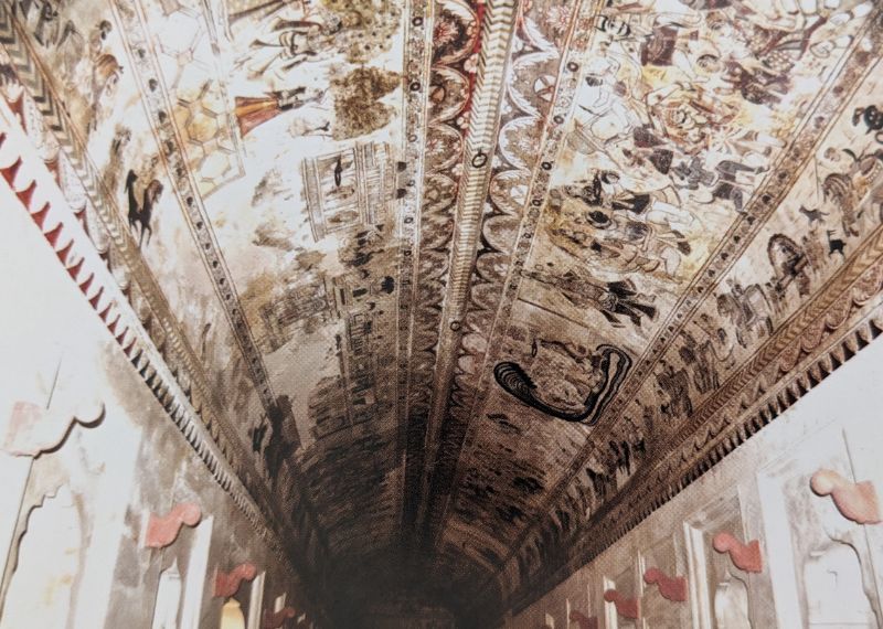 गलियारों की छतों पर किए गए अंकन :लक्ष्मी मंदिर :ओरछा : सत्रहवीं सदी व उन्नीसवीं सदी