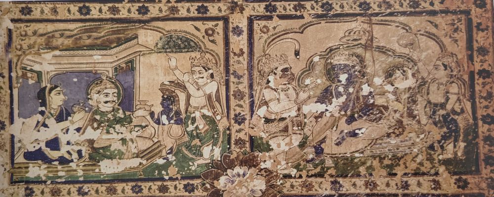 दरबार तथा अश्व पर सवार राजा  : लक्ष्मी मंदिर :ओरछा : सत्रहवीं सदी