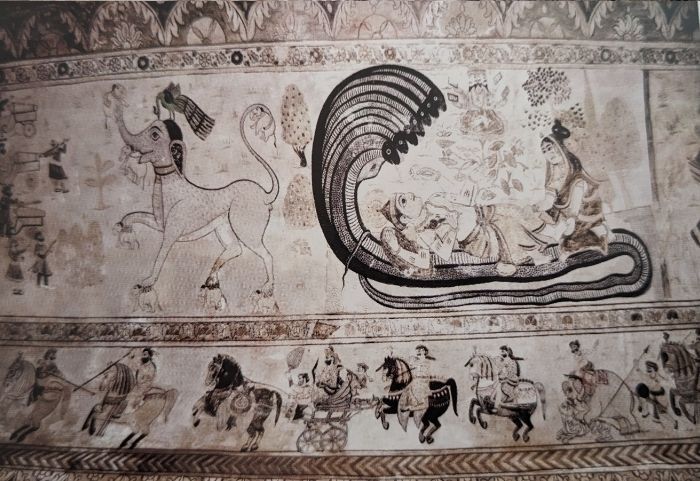 विशालकाय पशु व शेषशायी विष्णु : लक्ष्मी मंदिर :ओरछा : सत्रहवीं सदी
